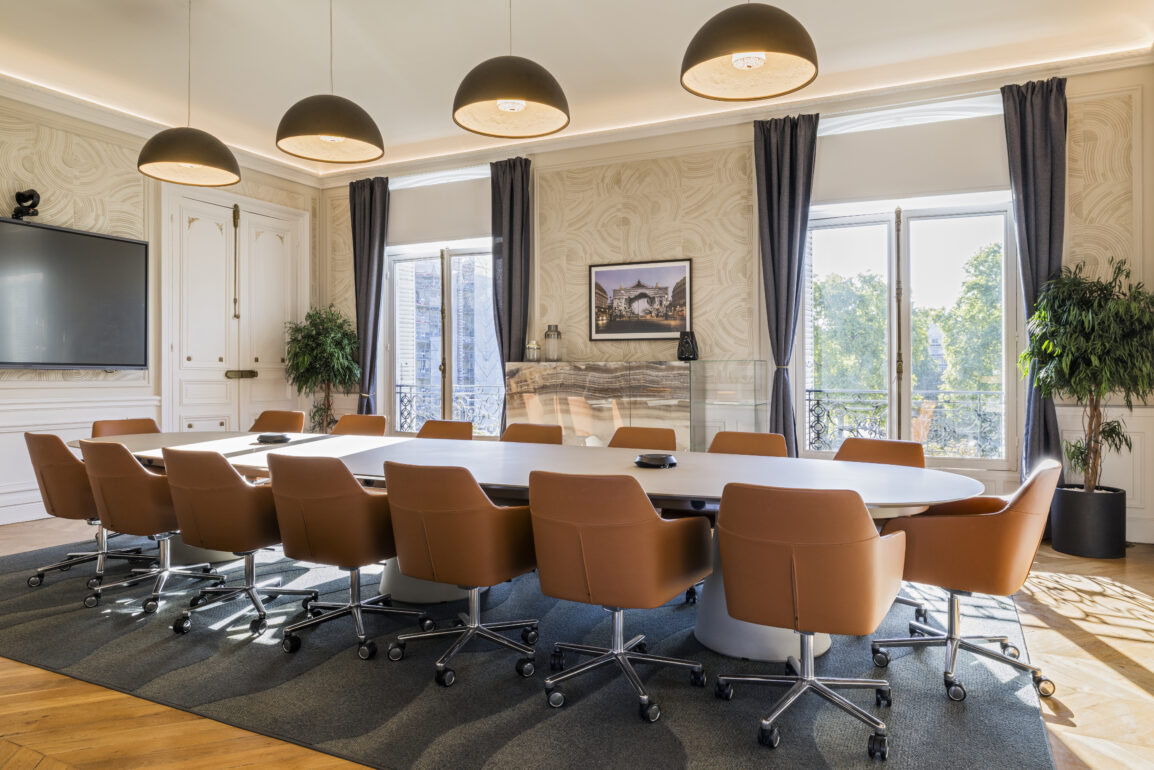 Dans un immeuble haussmannien prestigieux de la rue de Surène, au cœur du 8e arrondissement, cette banque d’investissement internationale souhaitait réaffirmer son identité à travers un projet d’aménagement structurant, conjuguant élégance, fluidité et efficacité.